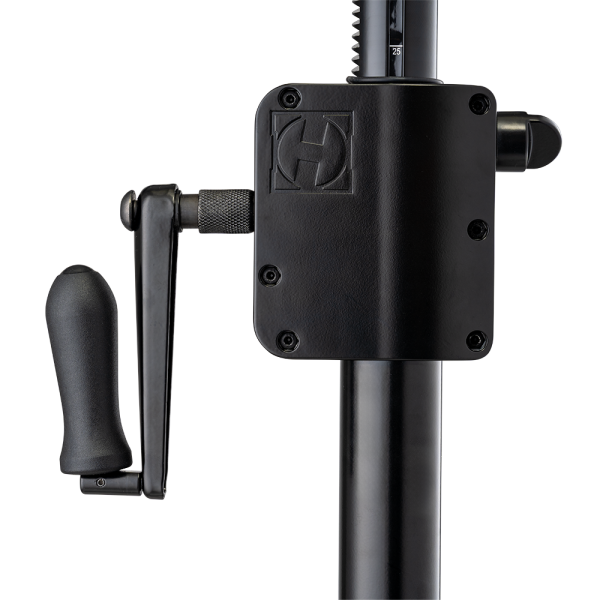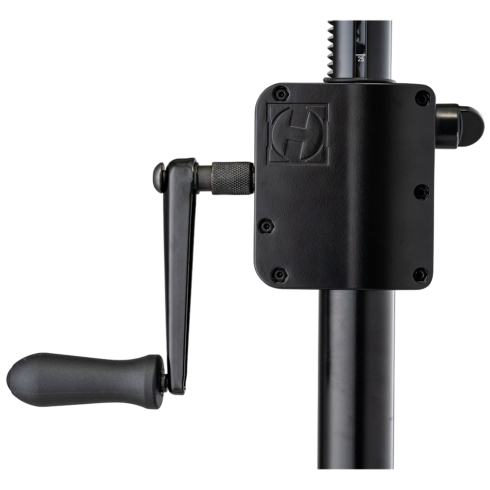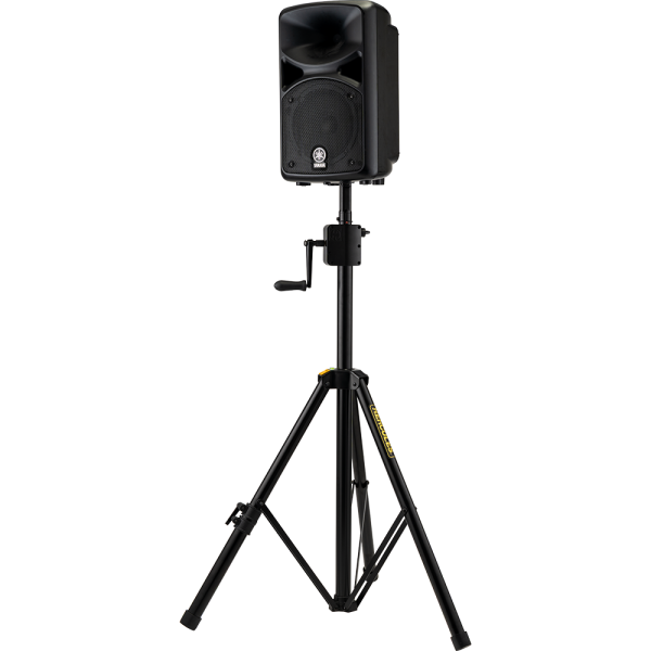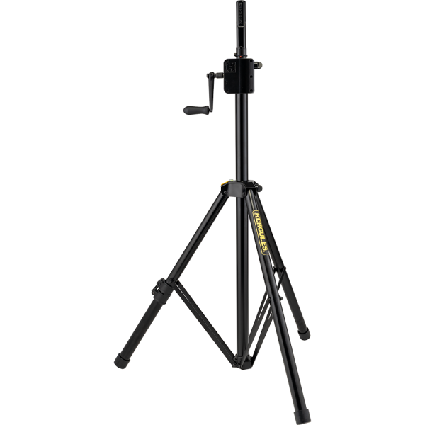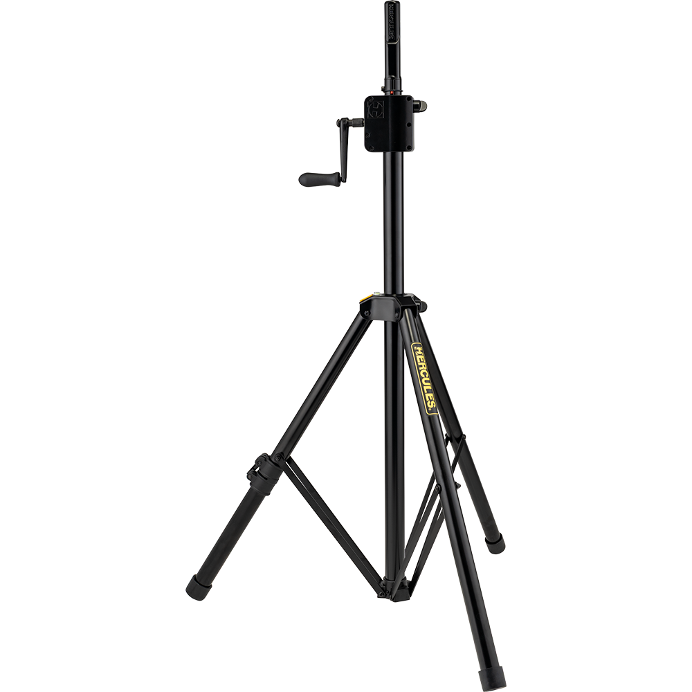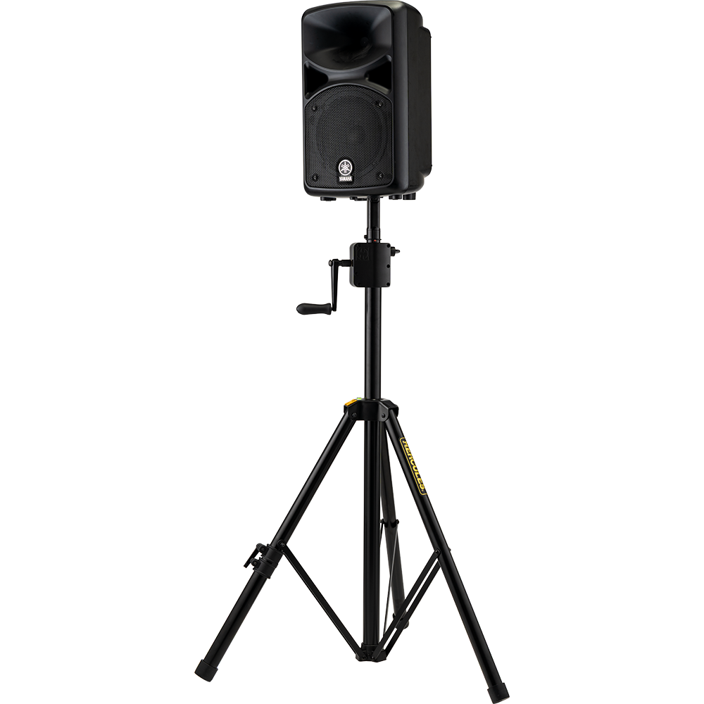The Hercules SS710BPLUS Gear-up Speaker stand features the Premium Gear-up System to raise and lower speakers to desired height, and to securely lock them in place. The SS710BPLUS also features the EZ Adaptor pole top, and a leveling leg to adjust for uneven floors, stairs, or sloping surfaces.