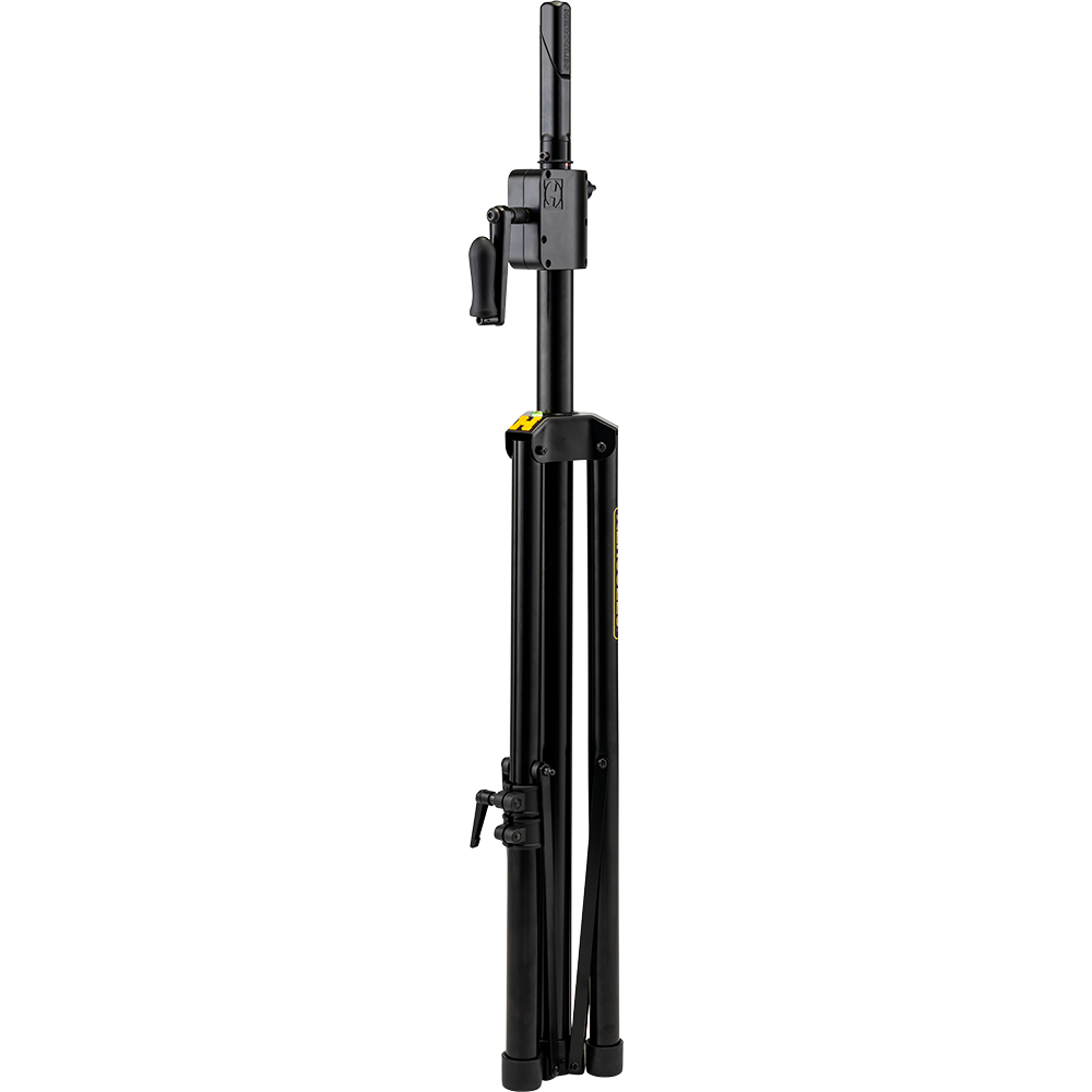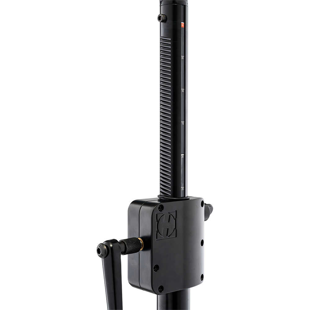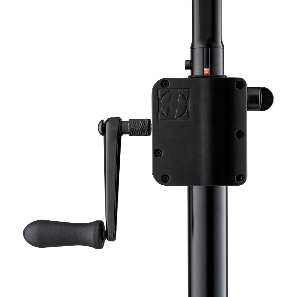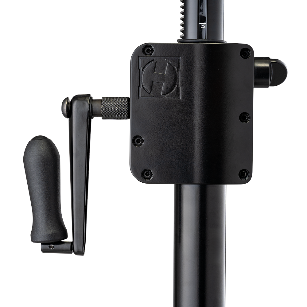 The Hercules SS710BPLUS Gear-up Speaker stand features the Premium Gear-up System to raise and lower speakers to desired height, and to securely lock them in place. The SS710BPLUS also features the EZ Adaptor pole top, and a leveling leg to adjust for uneven floors, stairs, or sloping surfaces.